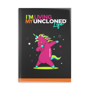 "I'm Living My UnCloned® Life with Dabbing Unicorn" 8.5in x 11in Hardcover Notebook with Puffy Covers